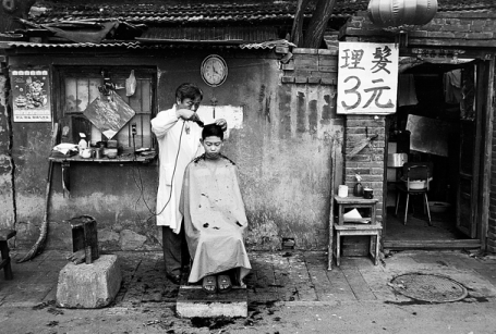 His awardwinning work Peizhi Hutong depicts a shirtless elderly man with a cattail leaf fan in his hand. The man is sitting on a threshold of a house in the hutong.