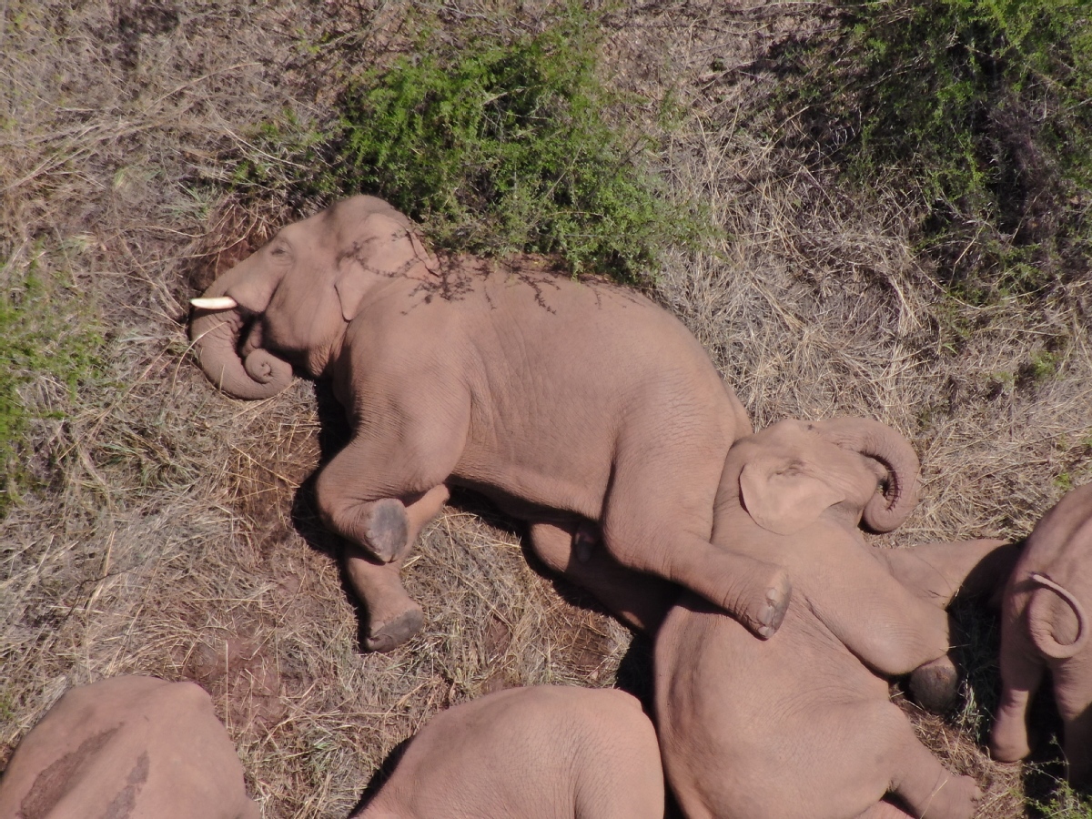 Members of the herd take time out for a nap in the Jinning district of Kunming on Monday. YUNNAN FOREST FIRE BRIGADE