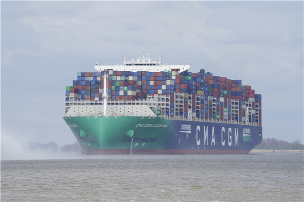 The huge container ship CMA CGM Jacques Saade sails on the Elbe River toward the port of Hamburg, Germany, on May 3. MARCUS BRANDT/DPA/ASSOCIATED PRESS