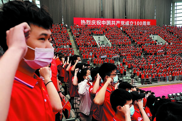 The university also gave customized greetings cards and notebooks to 1,163 Party members who have reached 10 years of Party service as of Thursday as motivation for each Party member to keep in mind their responsibilities to the people and dedication to their career.