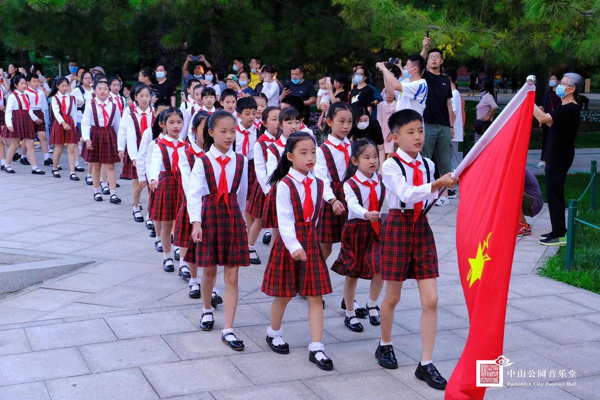 Before the concert, a children chorus from Beijing performed Chinese songs, including Sing A Song for the Party, outside the Forbidden City Concert Hall, which attracted many tourists.