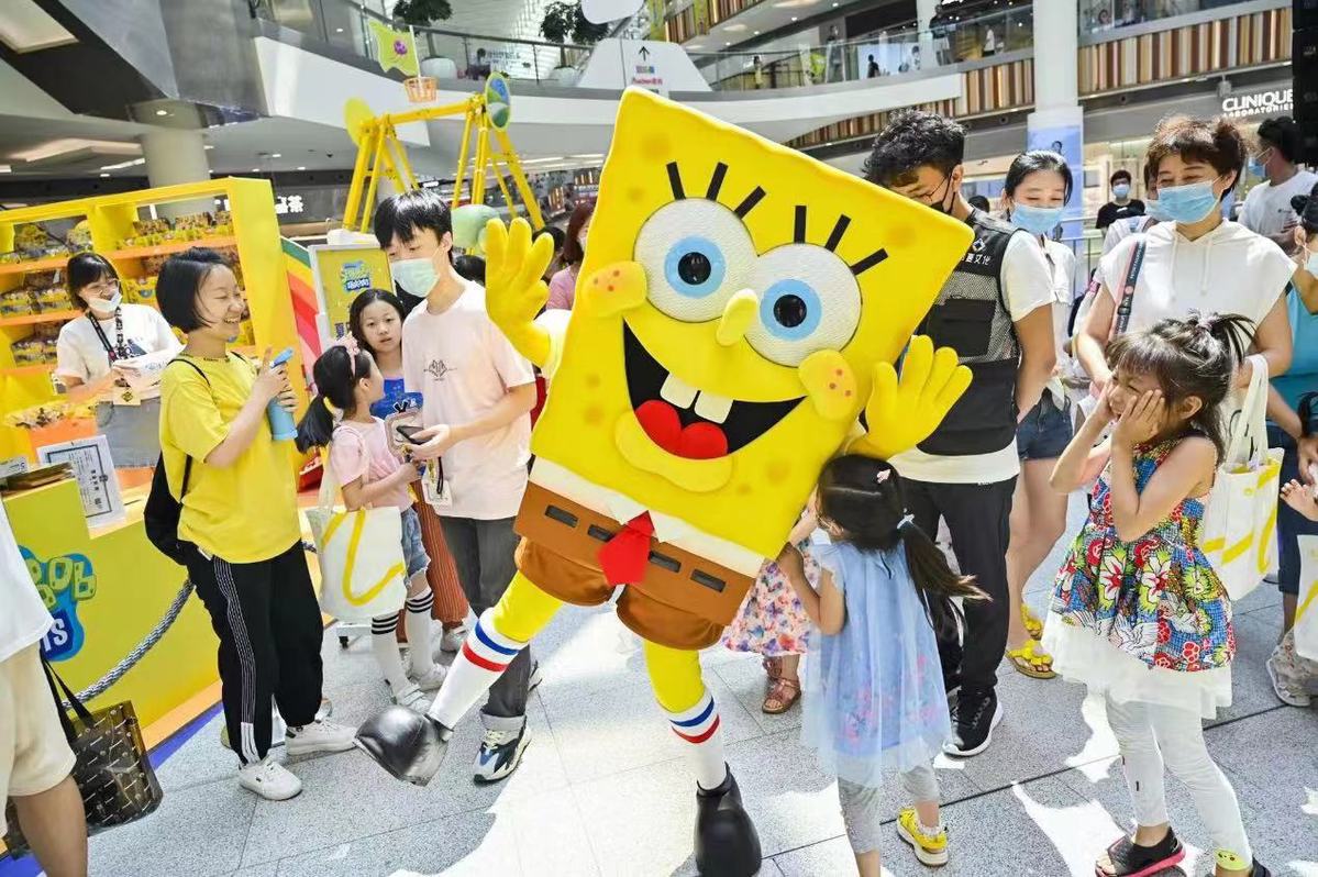 An exhibition centered on American cartoon character SpongeBob SquarePants kicked off in Beijing's Livat shopping center on Friday.