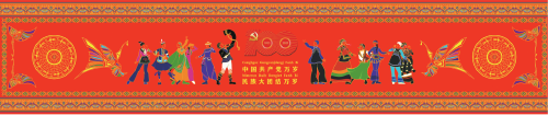 A 12-meter-long brocade piece was created by weavers from ethnic minority communities in the village of Banchi in Chongzuo, a city in Guangxi, to mark the area's poverty alleviation efforts and other development achievements in the run-up to celebrations on July 1 for the centenary of the Communist Party of China. CHINA DAILY