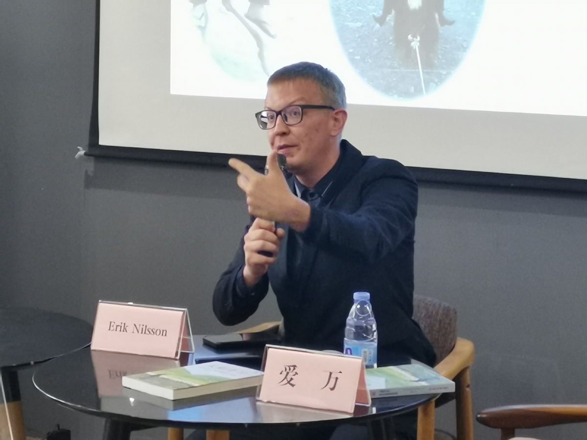 Erik Nilsson, an American journalist who works at China Daily and a recipient of the Chinese Government Friendship Award, held a talk to promote his new book in Shanghai on July 16 .