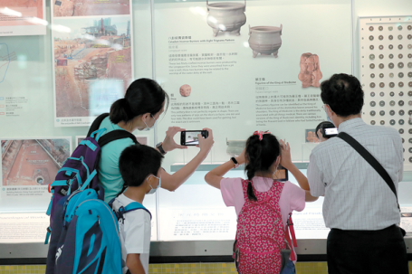 The exhibition named Treasures from Sacred Hill at Sung Wong Toi Station, Hong Kong's first exhibition at a subway station, displays numerous relics, including ceramic vases, incense burners and even pottery dice excavated during the station's construction.