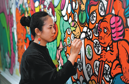 Her love for mural paintings started in 2010 when she visited Sanbao, a village in China's porcelain capital of Jingdezhen in East China's Jiangxi province.