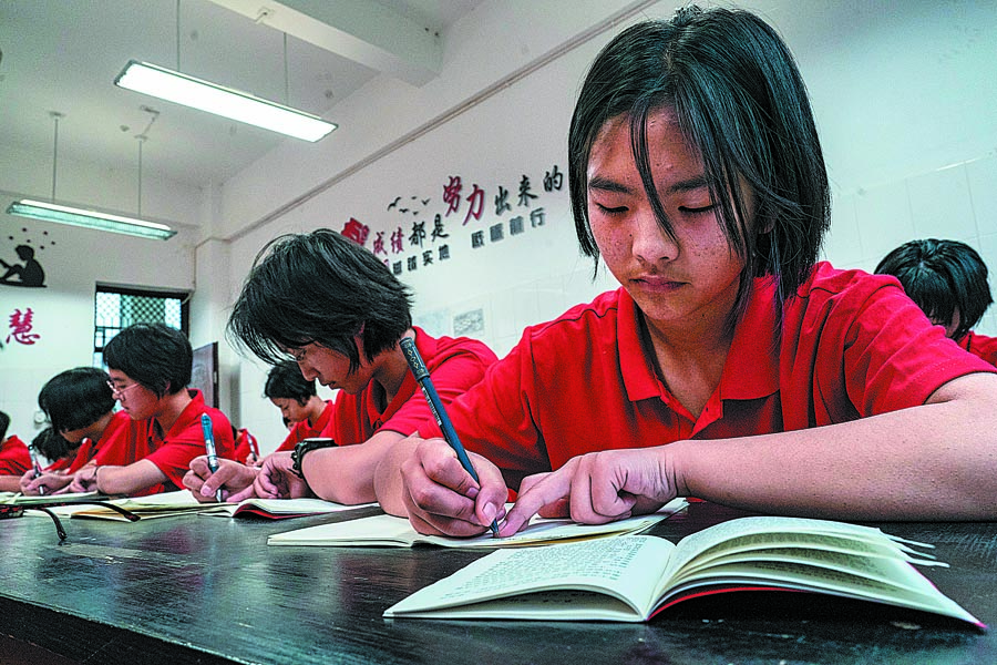 Yang and her classmates study in the classroom. [Photo/Xinhua]