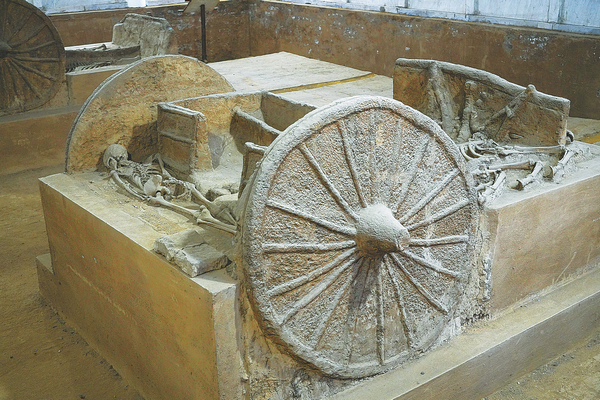 Sacrificial culture and divination practice prevailed in the Shang Dynasty, so be prepared to see large sacrifice pits with a human skeleton, in many cases those of slaves or prisoners, and animal skeletons as well.