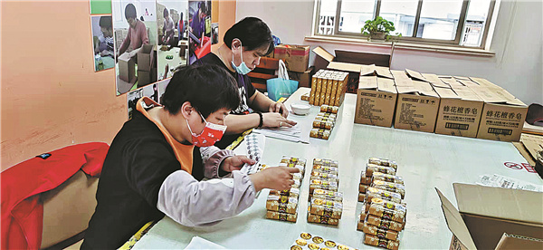 Chen Lei, 38, with severe intellectual impairment, started working in a sunshine home in 2005, and his bodily coordination has significantly improved since he started wrapping soap in 2009, Wang says.