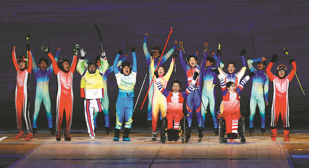 Performers savor the atmosphere during the opening ceremony of the Beijing 2022 Paralympic Winter Games on on March 4, 2022. [Photo/Reuters]
