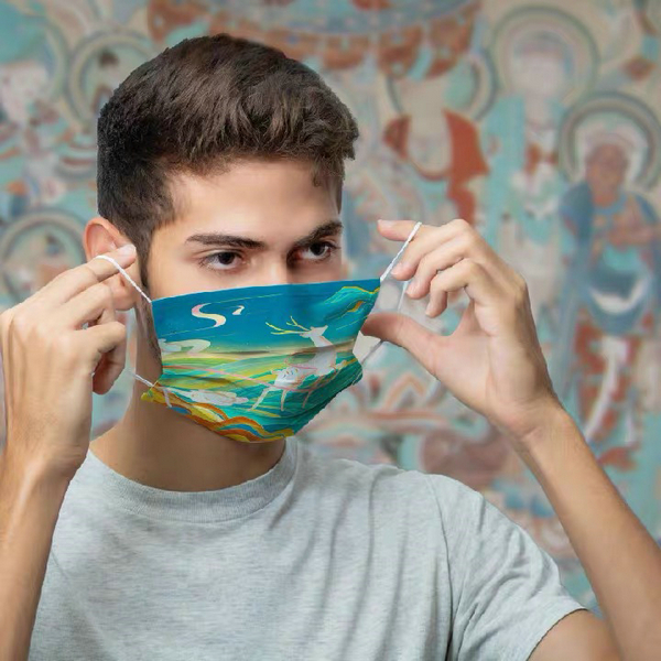 A mask printed with the Nine-Colored Deer from Dunhuang frescos. [Photo/tmall.com]