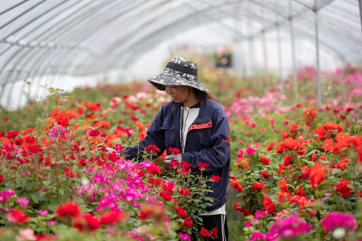Workers arrange flowers at Colorful Garden Base. [Photo by Xue Jiandong/For chinadaily.com.cn]