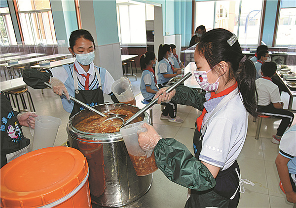 Students in Qingdao, Shandong province, volunteer to help in their school canteen. Some of the vegetables served were actually planted by the students. They are part of a program launched by education authorities in Qingdao to help young people get accustomed to work and build up their life skills. Various activities, which are thoroughly enjoyed by the students, include cooking, cleaning and growing vegetables. The students are also involved in washing the dishes and cleaning floors. [Photo/Xinhua]