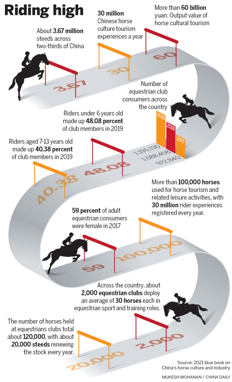 Regional authorities plan to attract over 30,000 people to join riding clubs over the next decade, while equestrian competition organizers are eyeing to host up to two international and six national-level events annually in the next three years, as well as more than 30 local ethnic horse-racing events a year.
