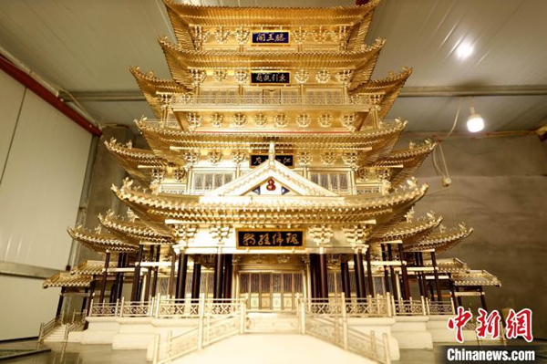 Hebei craftsman Qian Haiqiang created a miniature of Tengwang Pavilion, one of China's four great towers in Jiangxi province, using 158 kilograms of silver during five years of dedication.