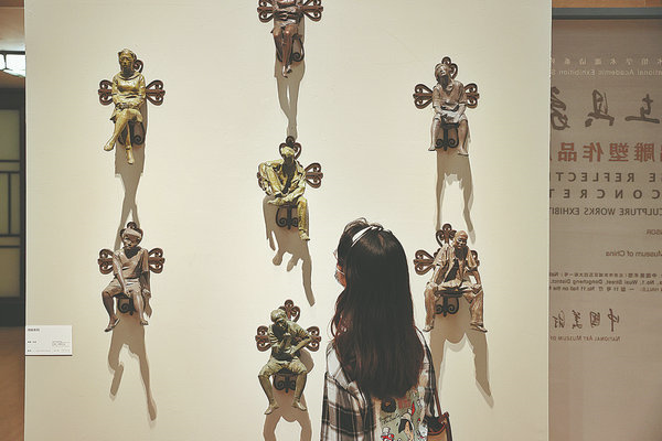 Li He, a professor at the Academy of Arts and Design, Tsinghua University, is also a sculptor whose works portray both luminaries in history and unsung grassroots heroes. Dozens of such statues he has created are now on show at Image Reflected in Concrete, running through July 6, at the National Art Museum of China in Beijing. The works show Li's academic background in art, as well as an integration of the philosophies of Eastern and Western sculptures. Highlights on show include a set of four bronze statues depicting Liang Qichao (1873-1929), Zhao Yuanren (1892-1982), Wang Guowei (1877-1927) and Chen Yinque (1890-1969)-all eminent figures in guoxue, the study of Chinese language and classics, and who once taught at Tsinghua. A bigger version of the work is installed outside Tsinghua University Art Museum. Also on show are statues Li sculpted of others who have received national titles.