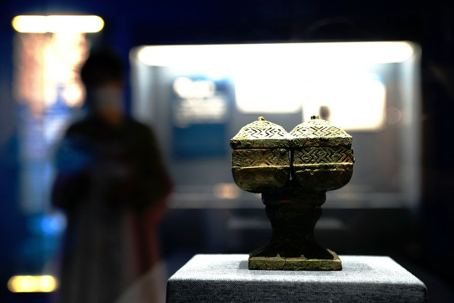 Visitors appreciate cultural relics at the China Maritime Museum in Shanghai on July 3, 2022. [Photo/Xinhua]