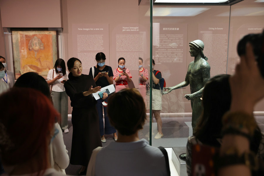 Visitors view an exhibit on July 11, 2022. [Photo by Jiang Dong/China Daily]