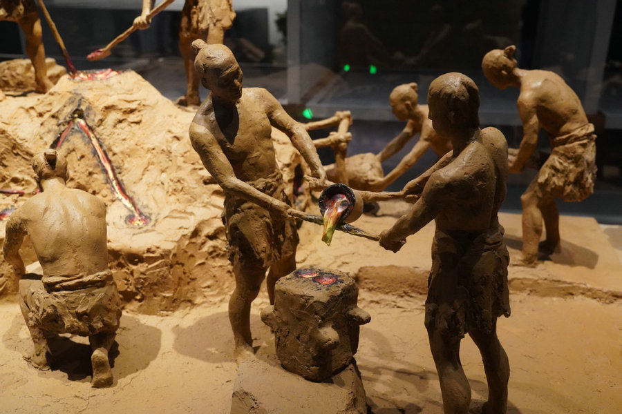 This photo shows the casting of copper at the Zhengzhou Shang City Museum on July 26, 2022. [Photo/Xinhua]