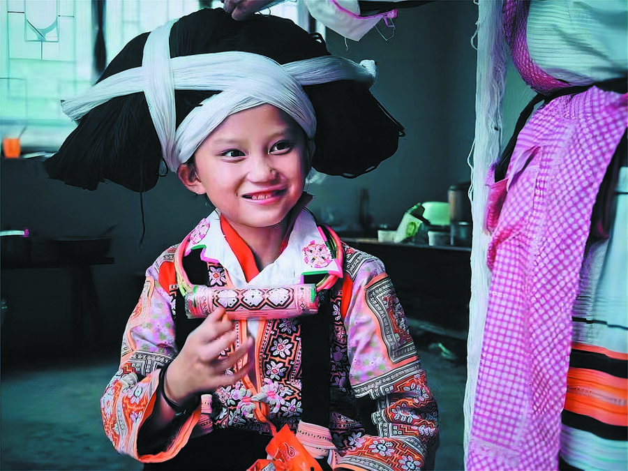 The "Longhorn Miao" ethnic community in rural Liupanshui, Guizhou province, is known for the women's unique hairstyle that features a headpiece shaped like a pair of long horns. [Photo provided to China Daily]