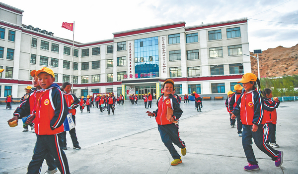 Pupils return to dormitory after night classes at the primary school in Dingri county, Shigatse city, Tibet autonomous region. FEI MAOHUA/JIGME DORJE/XINHUA