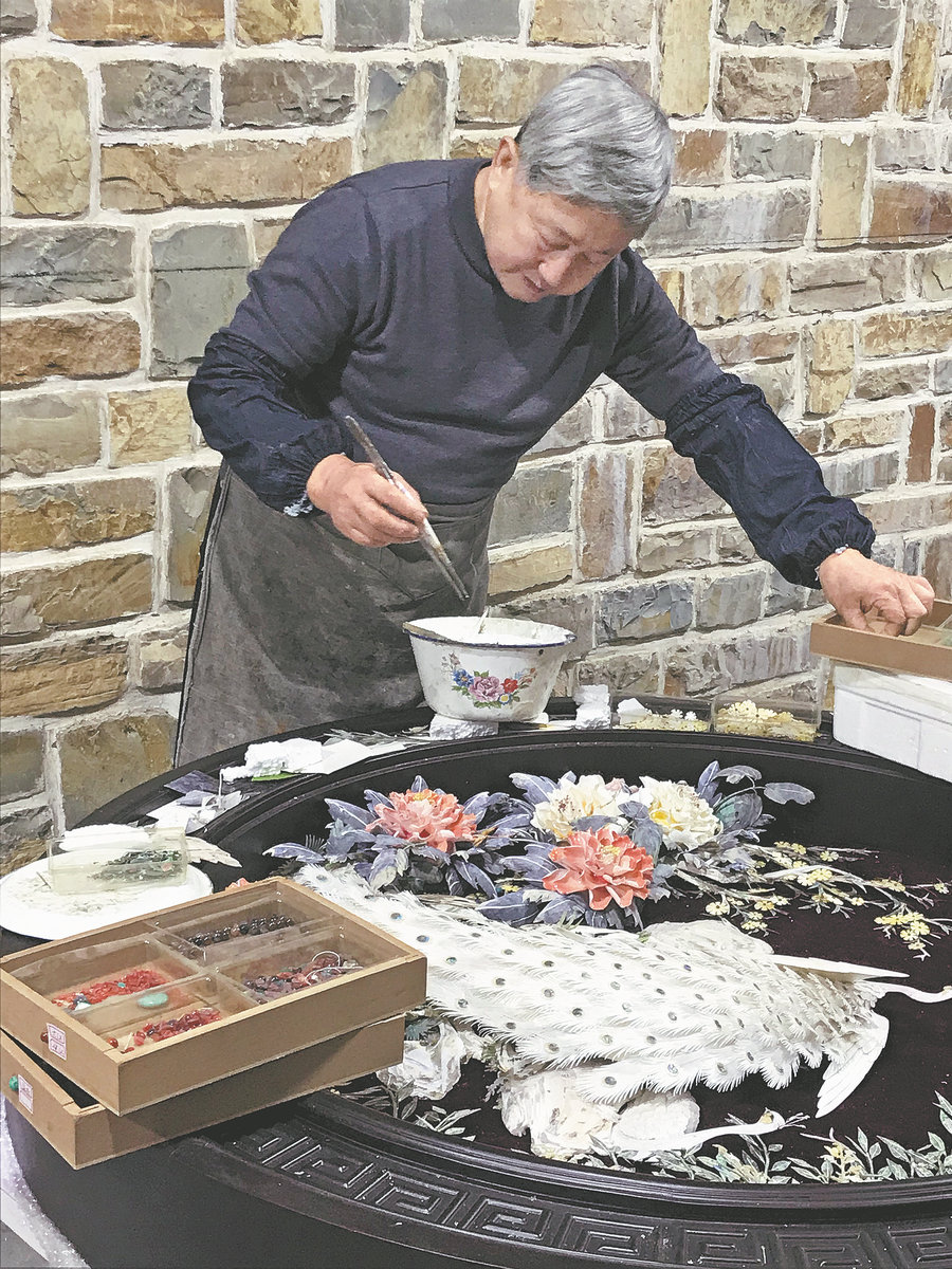 Sitting in front of a cutting wheel in his studio full of seashells, artisan Jin A'shan takes a few pieces, fashions them into different shapes and quickly polishes them. Within minutes, ordinary abalone shells are magically transformed into pink flower petals and colorful peacock feathers.