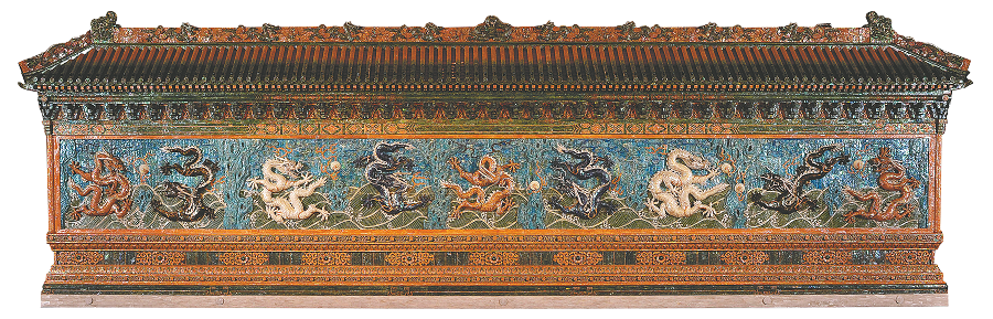 Standing in the central hall of the Shell Carving Art Museum is a smaller version of a wall replicating the Nine-Dragon Wall in Beihai Park in Beijing. All the nine dragons carved into the wall, together with hundreds of smaller ones of varying colors, are made from seashells.