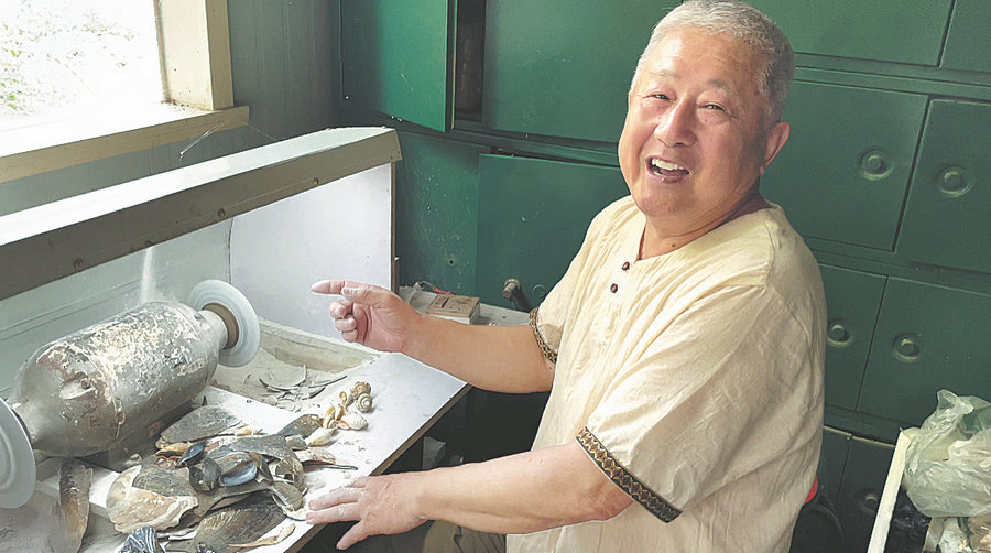 Jin Ji says his father seems to have no other interest other than shell carvings. But once the gray-haired artist begins working, he turns into a child.