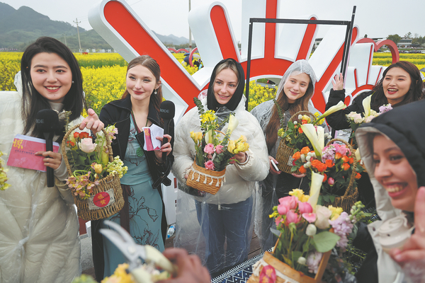 During their visit, they explored local oilseed rape fields to learn how technology has enhanced crop yields. They also took part in Jingzhe traditions such as bamboo weaving and kite-making. MA DUO/FOR CHINA DAILY