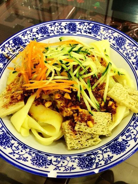 Niang pi zi cannot be missed among the local delicacies. Flour paste is steamed for 3-4 minutes, then cut into strips and served with mustard, garlic, sesame butter, chili oil, vinegar and soy sauce. This is a favorite among locals and many tourists.
