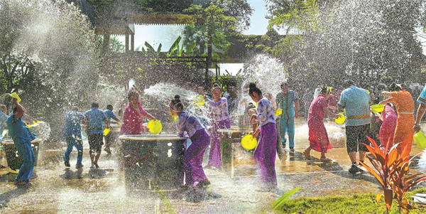 The annual Water Splashing Festival celebrated by the Dai ethnic group is a big draw for tourists in Xishuangbanna, Yunnan. [Photo by Zhang Wei/China Daily]