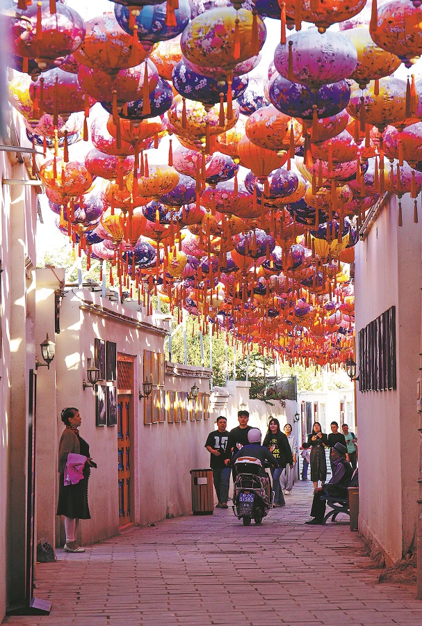 Wang said she came to Xinjiang to escape the pressure of city life in Chongqing. "The alley is beautifully renovated with ethnic-style buildings and colorful murals," she said.