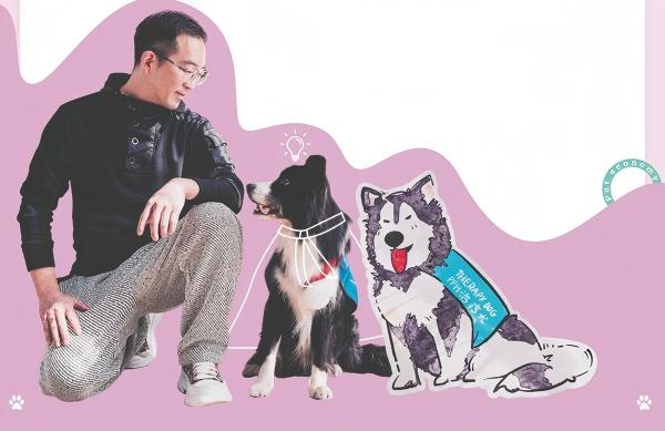 Wu Qi with one of his therapy dogs. [Photo provided to China Daily]