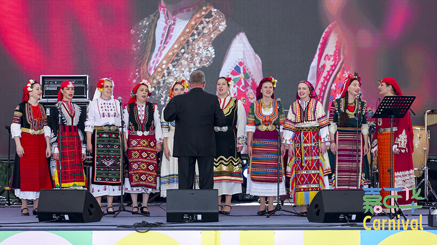 Bulgarian folk choir Dragostin Folk National performs at the 4th China-CEEC Culture & Arts Carnival in Beijing on June 20, 2025. [Photo provided to chinadaily.com.cn]