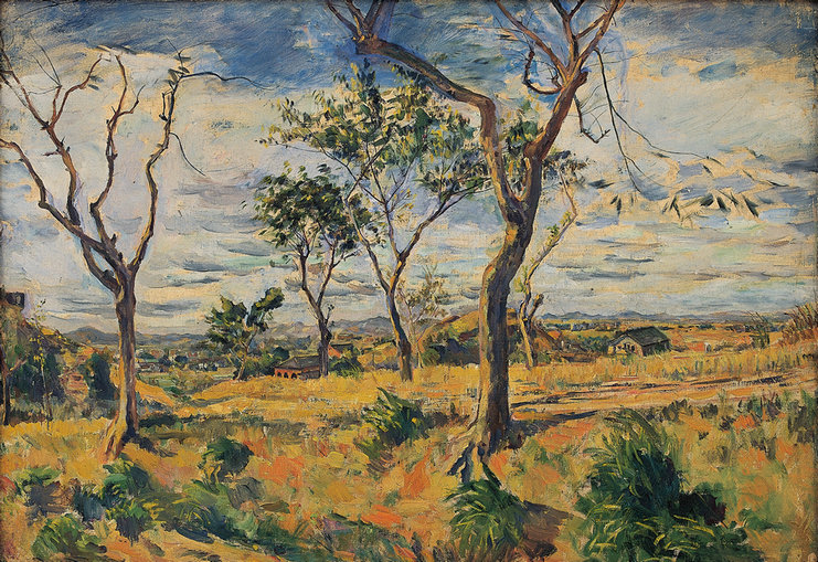 Works by Hu Gentian and his contemporaries displayed at the Art Museum of the Beijing Fine Art Academy, showing Guangdong's booming modern art landscape in the 20th century. [Photo provided to chinadaily.com.cn]