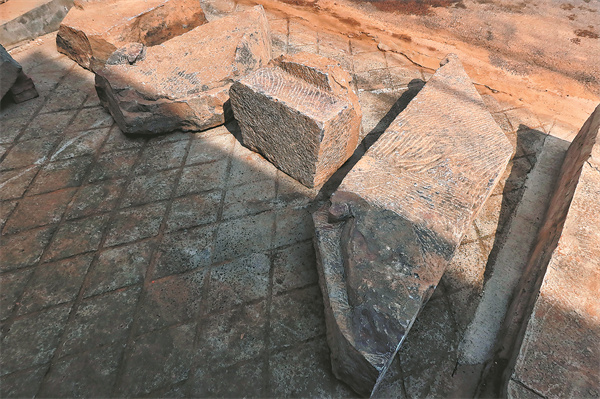 Stone architectural components found at the same site.[Photo provided by Jiang Dong/China Daily]