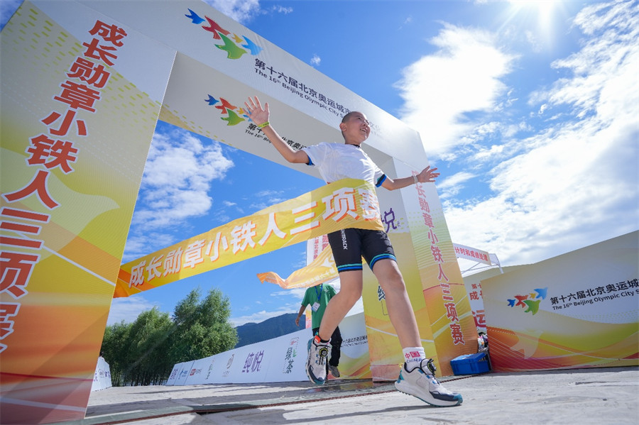 A youth-oriented triathlon kicks off in Changping district in Beijing on Sunday, attracting 500 young participants. [Photo provided to chinadaily.com.cn]