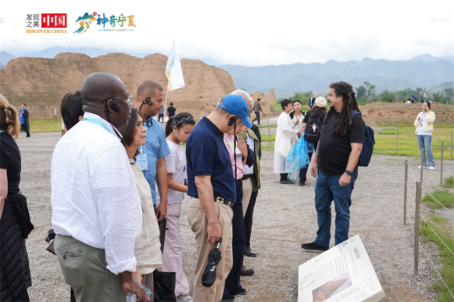 A diplomatic delegation from 14 nations visited the Xixia Imperial Tombs in Ningxia Hui autonomous region. [Photo provided to chinadaily.com.cn]