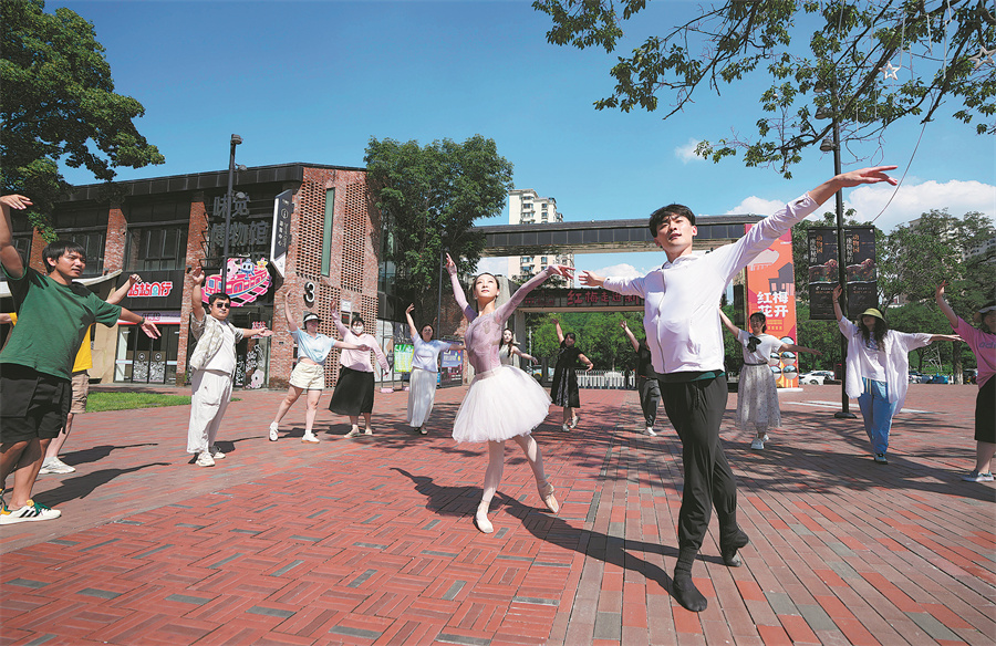 Led by dancers from the Liaoning Ballet, residents and tourists put their ballet skills to the test at a cultural and creative park in Shenyang.[Photo provided by Li Gang/Zhu Huaqiang/Wu Qinghao/Yang Qing/Pan Yulong/Xinhua]
