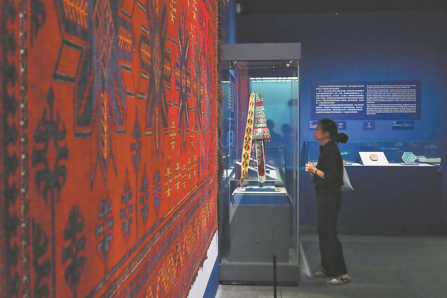 Also on show are textiles from the National Museum of the Republic of Kazakhstan. JIANG DONG/CHINA DAILY