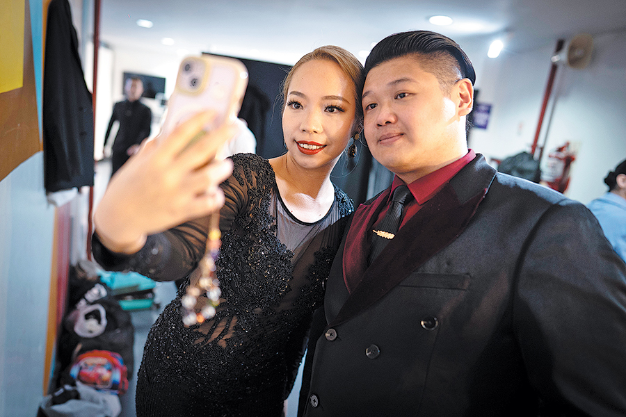 A backstage selfie captures the moment before the Tango de Pista quarterfinals.[Photo/Xinhua]