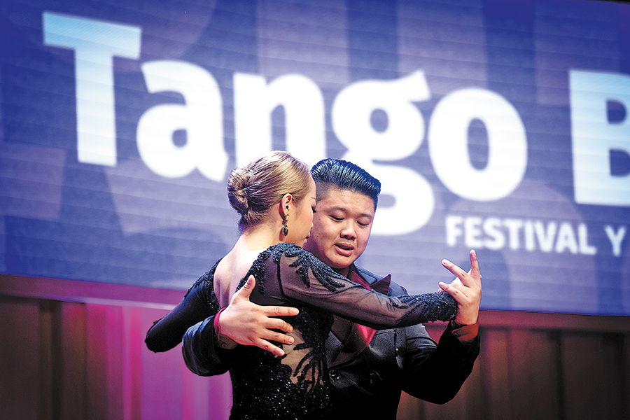 The pair compete during the quarterfinals of the Tango de Pista competition.[Photo/Xinhua]