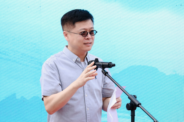 Chi Xuefeng, professor of the Stage Design Department and secretary of the Party Committee at the National Academy of Chinese Theatre Arts, gives a speech at the opening ceremony, Sept 20, 2025. [Photo provided to chinadaily.com.cn]