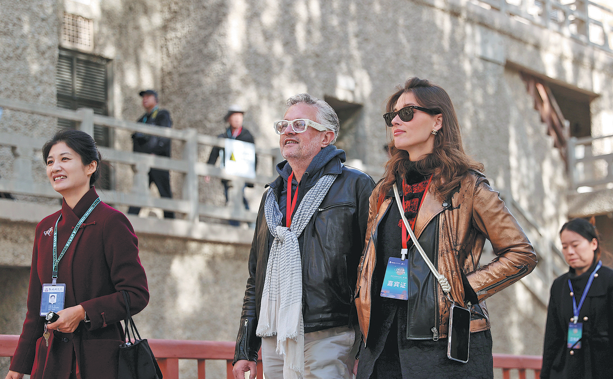 Two guests from Venice, Italy, visit the Mogao Caves, Dunhuang, on Sunday. CHEN ZEBING/CHINA DAILY