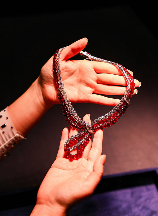 A show of rubies is held at Poly Auction Art Space in Beijing. [Photo provided to chinadaily.com.cn]