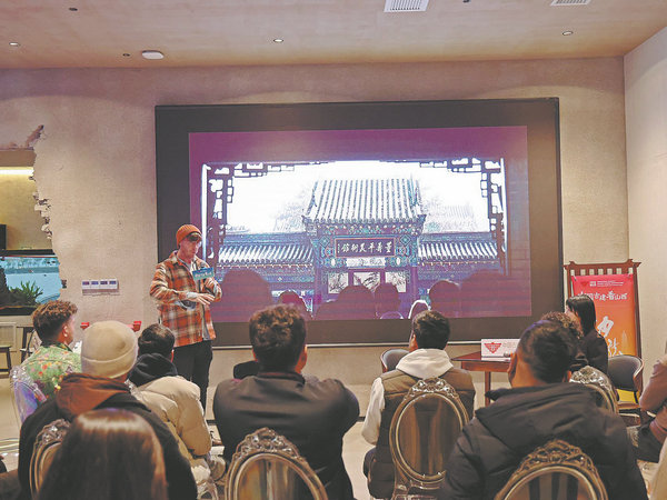 Welsh journalist Michael Rhys Card shares his insights on Shanxi's ancient architecture with the group. [Photo/WEI BO/YAN CHANGJIANG/FOR CHINA DAILY]