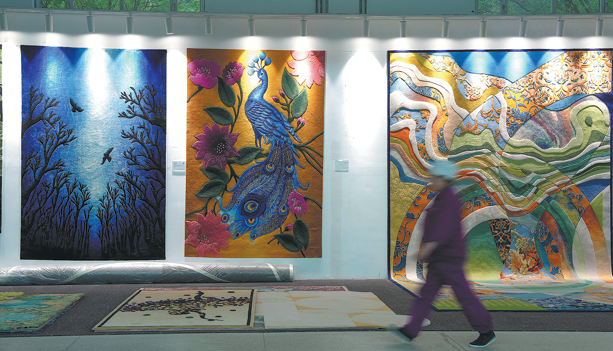 An employee walks past Tibetan carpets displayed at a workshop of Shengyuan Carpet Group in Xining, Qinghai province. With a history of more than 2,000 years, Tibetan carpets have found markets across China and more than 40 other countries and regions. DU XIAOWEI/XINHUA