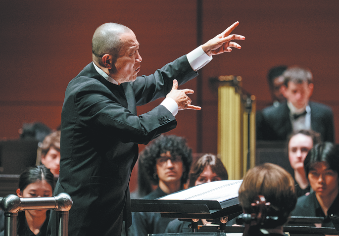Tan Dun, dean of the Bard College Conservatory of Music, performs at Lincoln Center's Alice Tully Hall in New York on Oct 29, premiering his Choral Concerto: Nine in North America to mark the conservatory's 20th anniversary and president Leon Botstein's 50th year leading Bard College. COURTESY BRIAN HATTON