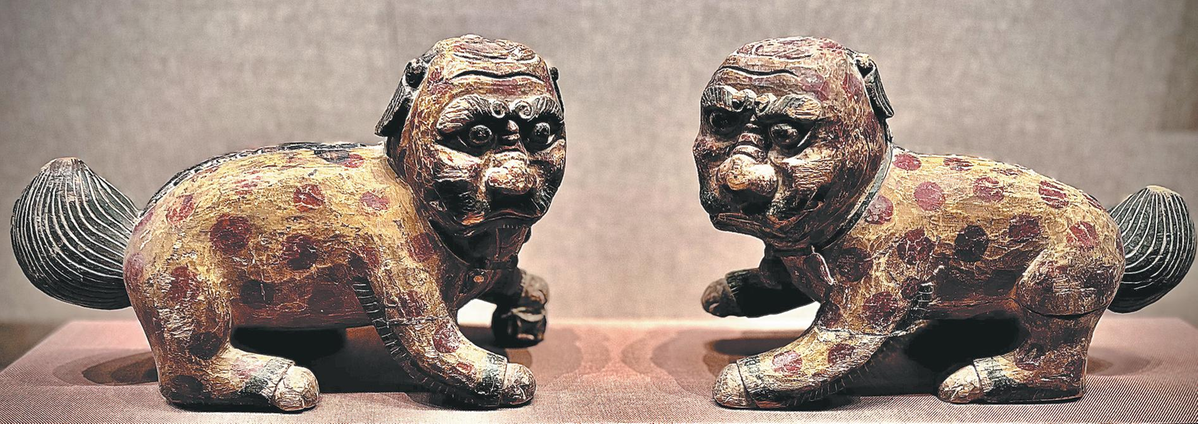 A pair of wooden lions carved in the Qing Dynasty (1644-1911) during Dunhuang's decline. ERIK NILSSON/CHINA DAILY