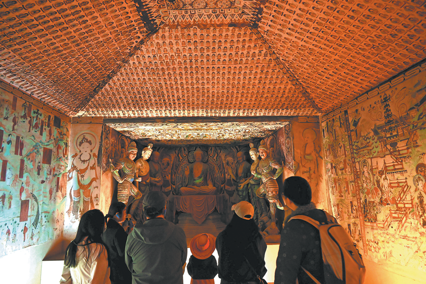 Visitors can explore a full-scale replica of Mogao Cave No 45, enabling them to freely experience and photograph this Tang-era (618-907) wonder, since access to the actual grotto is restricted. ZHANG XIAOLIANG/FOR CHINA DAILY